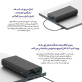 این پاوربانک مجهز به دو پورت USB-A و یک پورت USB-C است. پورت USB-C هم نقش ورودی و هم خروجی را دارد و به دلیل پشتیبانی از توان بالا، بهترین گزینه برای شارژ سریعترین دستگاهها به شمار میرود.