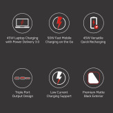 این ترکیب باعث میشود بتوانید سه دستگاه را بهطور همزمان شارژ کنید؛ بدون افت سرعت یا فشار اضافی روی پاوربانک.