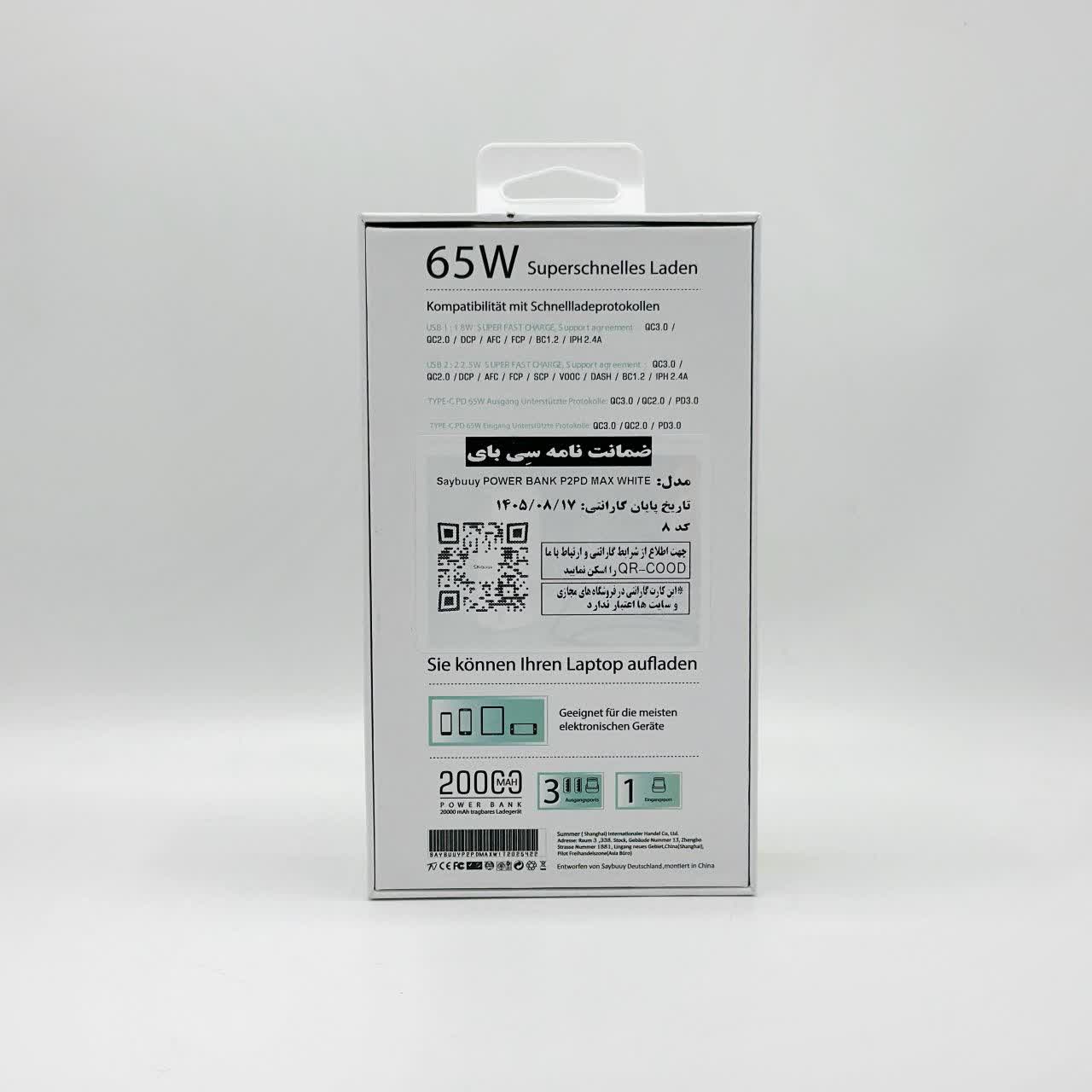 پاوربانک 65 وات سی بای SAYBUUY P2PD MAX با گارانتی 12 ماهه