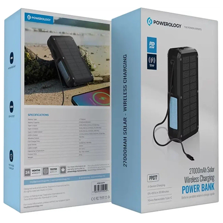 پاوربانک خورشیدی پاورولوژی POWEROLOGY PP077 با ظرفیت 27000 میلی آمپر