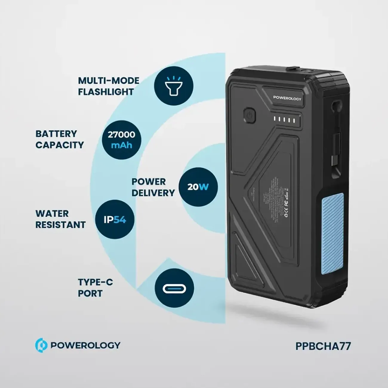 پاوربانک خورشیدی پاورولوژی POWEROLOGY PP077 با ظرفیت 27000 میلی آمپر