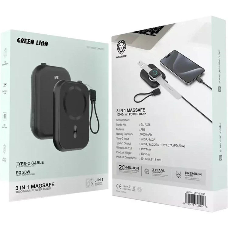 پاوربانک مگسیف گرین GREEN 3 in 1 با ظرفیت 10000 میلی آمپر