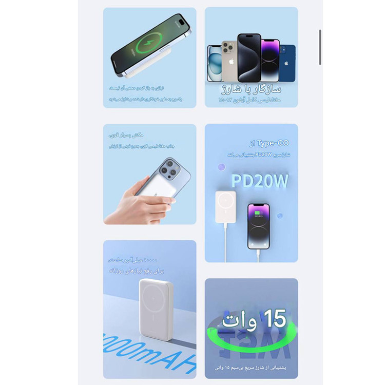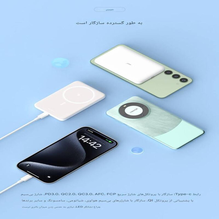 سازگاری: آیفون سری 12 به بعد، گوشیهای اندروید و سایر دستگاههای دارای قابلیت شارژ بیسیم