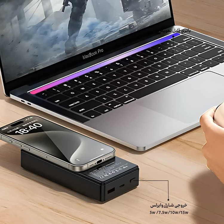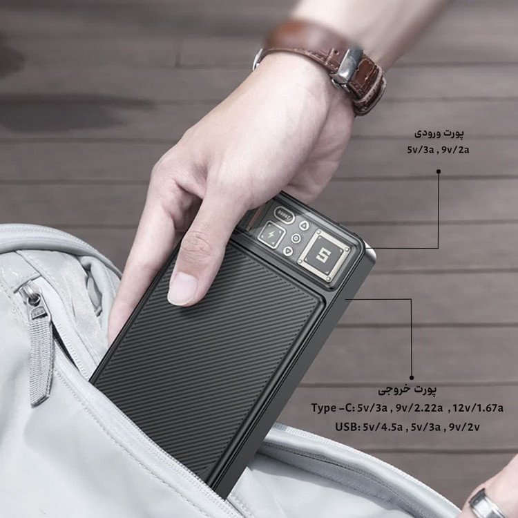 طراحی جمع و جور و سبک: با وجود ظرفیت بالا، این پاوربانک دارای طراحی جمع و جور و سبکی است که حمل آن را آسان میکند.